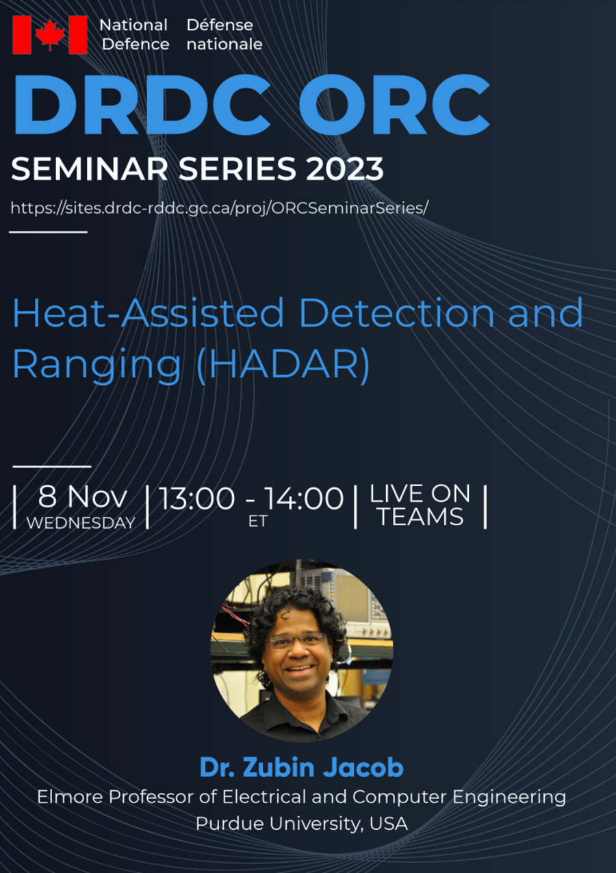 Dr. Zubin Jacob Presented "Heat-Assisted Detection and Ranging (HADAR)" in the ORC Seminar Series 2023. He spoke about how machine perception uses advanced sensors to collect information about the surrounding scene for situational awareness. State-of-the-art machine perception using active sonar, radar, and LiDAR to enhance camera vision faces difficulties when the number of intelligent agents scales up. Exploiting omnipresent heat signals could be a new frontier for scalable perception. However, objects and their environment constantly emit and scatter thermal radiation, leading to textureless images famously known as the ‘ghosting effect’.